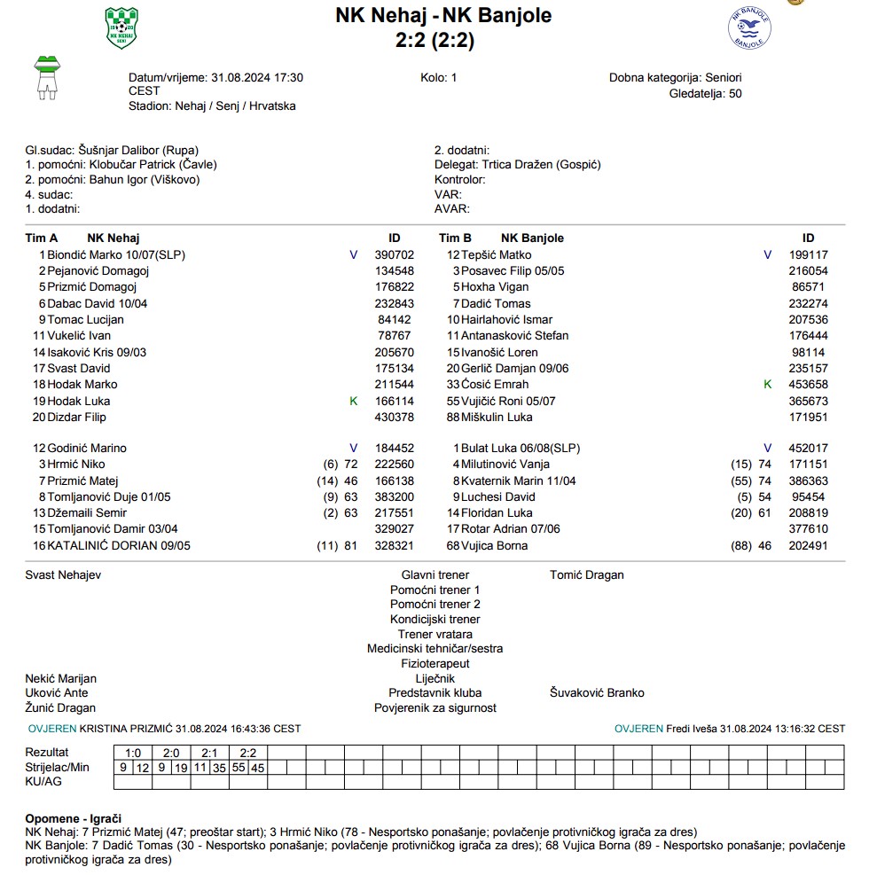 NK Nehaj – NK Banjole 2:2