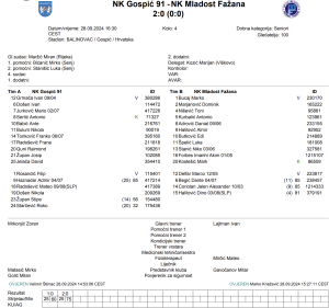 NK GOSPIĆ 91 2-0 NK MLADOST FAŽANA