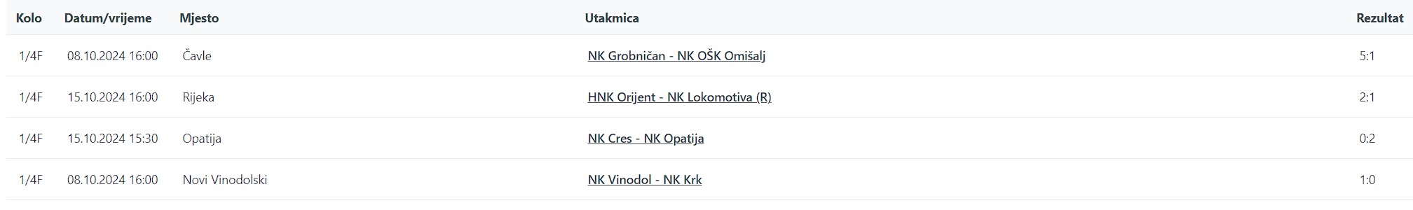 Odigrane su preostale dvije utakmice četvrtfinala Kupa Primorsko-goranske županije. Orijent je na domaćem terenu pobijedio Lokomotivu Rijeku 2:1, no zbog igranja s tri stranca umjesto dozvoljena dva, čeka se konačna odluka o ishodu utakmice. Opatija je u gostima svladala Cres 2:0 i osigurala polufinale. Trenutno su u polufinalu Grobničan, Opatija i Vinodol, dok je plasman Orijenta pod upitnikom.