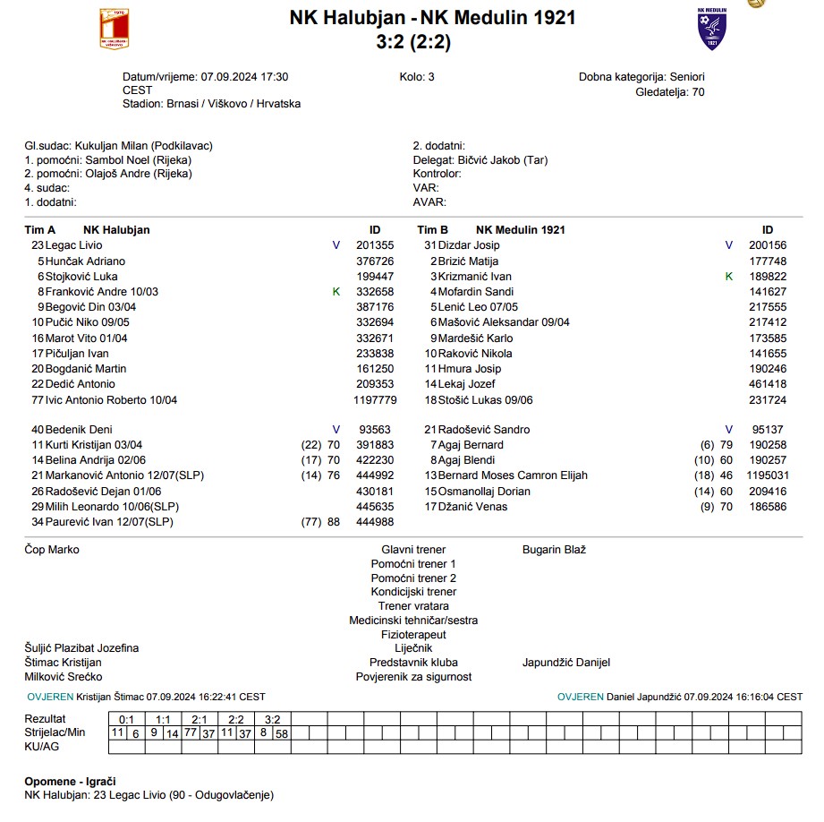 Halubjan i Medulin odigrali su spektakularnu utakmicu, pokazujući da su mladi igrači itekako angažirani. Iako su obje momčadi među najmlađima u prvenstvu, Halubjan je na domaćem terenu slavio pobjedu, dok je Medulin 1921 pretrpio svoj prvi poraz ove sezone. Medulin je poveo u 6. minuti golom Josipa Hmure, ali su do odmora pali još tri pogotka. Halubjan je brzo izjednačio u 14. minuti pogotkom Dina Begovića, a u 37. minuti Hmura je ponovo doveo Medulin u vodstvo, samo da bi Roberto Antonio Ivić izjednačio rezultat prije odlaska na odmor. U drugom poluvremenu, jedini gol postigao je domaćin preko Andre Frankovića, koji je Halubjanu osigurao drugu pobjedu sezone.